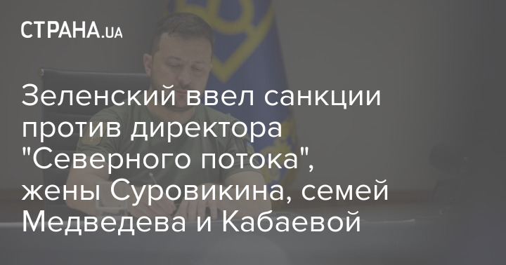 Зеленський ввів санкції проти директора "Північного потоку", дружини Суровікіна, сімей Медведєва та Кабаєвої