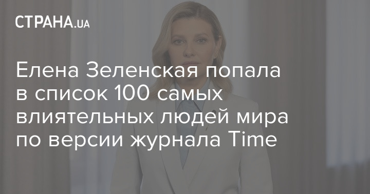 Дружина президента України Олена Зеленська потрапила до рейтингу Топ-100 найвпливовіших людей планети у 2023 році за версією американського журналу Time.