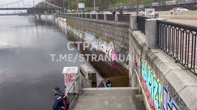 У Києві внаслідок підйому води у Дніпрі затопило набережну на Поштовій площі.