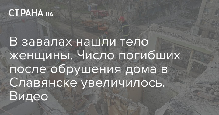 У Слов'янську з-під завалів зруйнованого багатоповерхового будинку витягли тіло загиблої жінки.