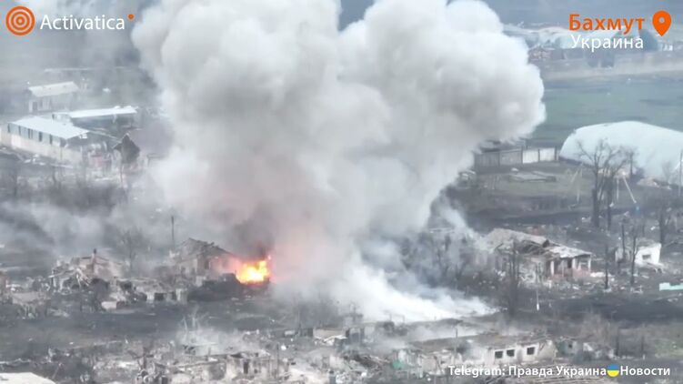 По Бахмуту завдано дуже потужного удару. Відео вибуху, який спричинив стовп диму