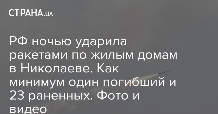 Сьогодні вночі РФ здійснила ракетний обстріл житлових будинків у Миколаєві. Загинула щонайменше одна людина, поранено ще більше 20.