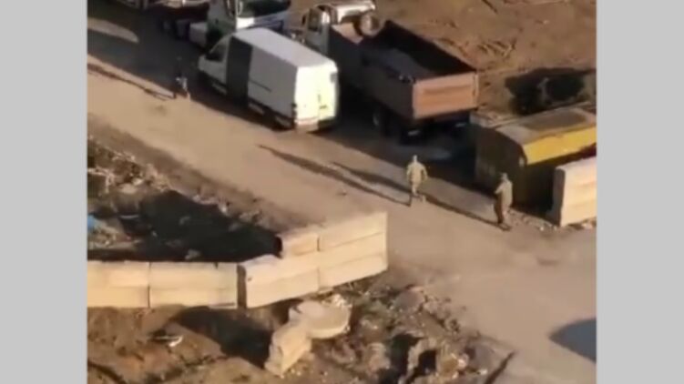 На відео можна помітити, що двоє військкомів переслідують чоловіка, який тікає від них у бік будівництва.