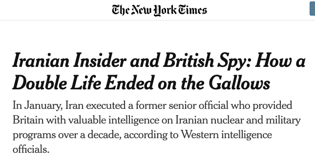 Видання пише, що в 2019 влада Ірану отримала інформацію про подвійну роботу Акбарі від російської розвідки. Тоді його було заарештовано, а в січні цього року страчено.