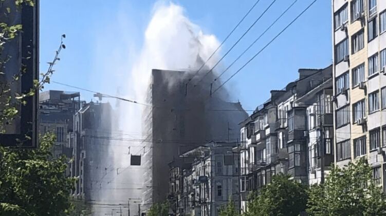 У суботу, 6 травня, у Києві стався грандіозний прорив водопроводу на Великій Васильківській вулиці. У результаті утворився фонтан, струмінь якого б'є вище за п'ятиповерхівку.