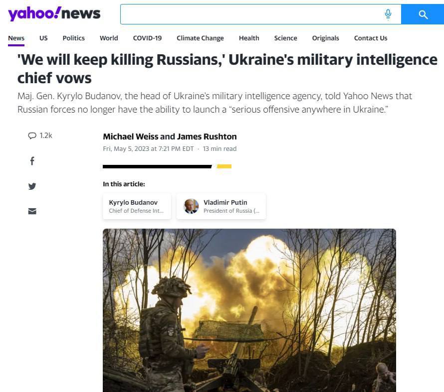 13.01 Імовірність великого наступу росіян на якомусь напрямку начальник Головного управління розвідки України Кирило Буданов розцінює як нульову. Про це він заявив в інтерв'ю Yahoo News.