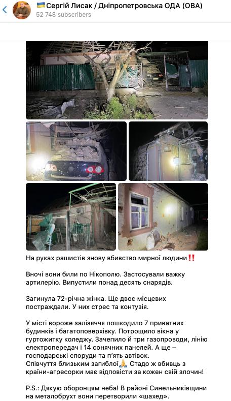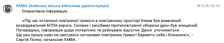 Над Дніпропетровською областю та Києвом, як пізніше стало відомо, були збиті дрони. Над столицею БПЛА був розвідувальний тип, а над Синельниковим - "Шахед".