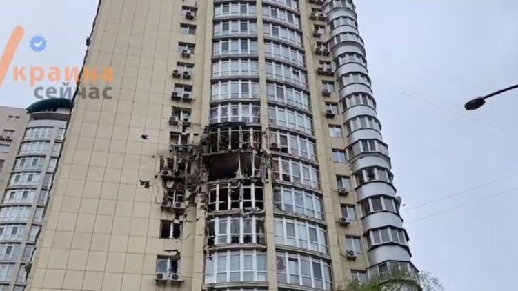 З'явилося відео пошкодженого будинку в Києві внаслідок атаки безпілотників