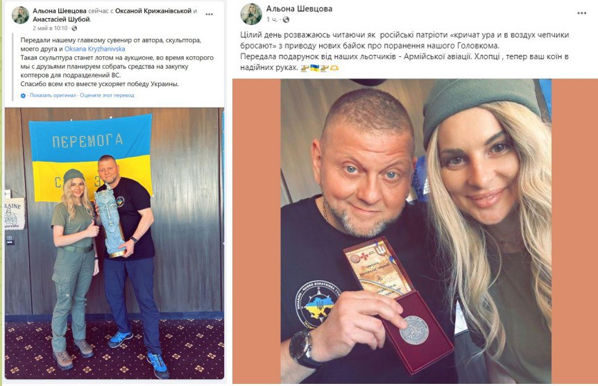 Олена Шевцова із Валерієм Залужним. Колаж фото соцмереж