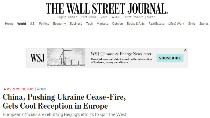 "Китайський посланник, спрямований на просування мирного плану Пекіна щодо України, ніс чіткий сигнал: союзники США в Європі повинні заявити про свою автономію і закликати до негайного припинення вогню, залишивши Росії у володінні частини свого меншого сусіда, які вона зараз окупує. Західні чиновники знайомі. з переговорами у столицях по всьому континенту", - йдеться у матеріалі.