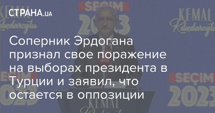 Суперник Реджепа Тайіпа Ердогана Кемаль Киличдароглу у своєму першому виступі після другого туру виборів президента фактично визнав свою поразку та заявив, що продовжить опозиційну діяльність.