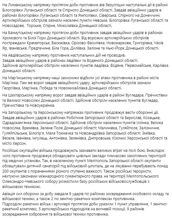 3. На Волинському, Поліському, Сіверському, Слобідському, Бахмутському, Авдіївському, Шахтарському, Запорізькому та Херсонському напрямах ситуація без істотних змін.