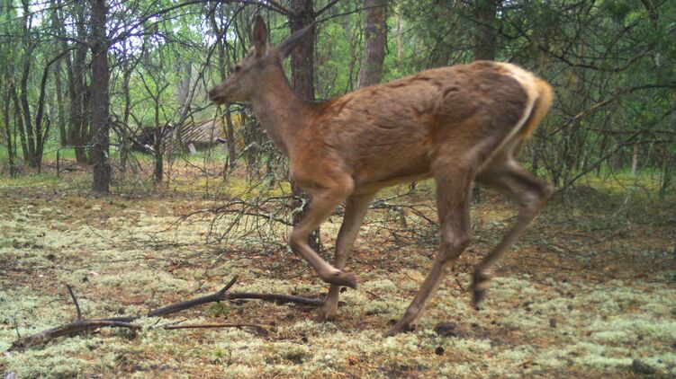 Чорнобильський радіаційно-екологічний біосферний заповідник опублікував фото оленя, який кудись поспішає: або наздоганяє череду, або тікає від хижака.