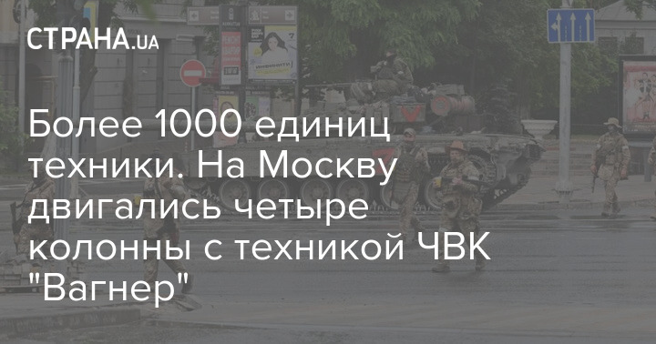 Вчора під час "пригожинського" заколоту у напрямку Москви рухалися чотири колони з технікою ПВК "Вагнер", які сумарно налічували понад 1000 одиниць техніки: танки, БМП, РСЗВ, вантажівки, автобуси та легковики.