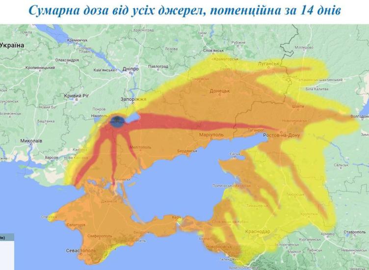 Ще у серпні 2022 року українська компанія "Енергоатом" публікувала карту зони поразки у разі вибуху на АЕС: вона охоплювала Крим та Ростовську область. А також Маріуполь та інші захоплені території Донбасу, Запорізької та Херсонської областей (тобто весь сухопутний коридор у Крим, який є для РФ стратегічно важливою транспортною артерією).