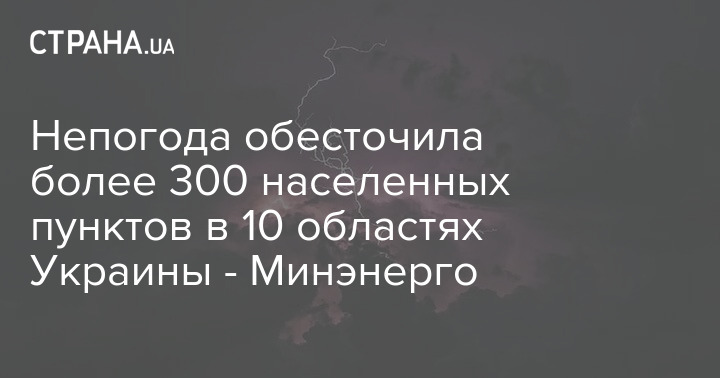 В результаті масштабного грозового шторму, що пройшов країною, в 10 областях України було зафіксовано пошкодження ліній електропередачі, внаслідок чого понад 300 населених пунктів залишилися знеструмленими.