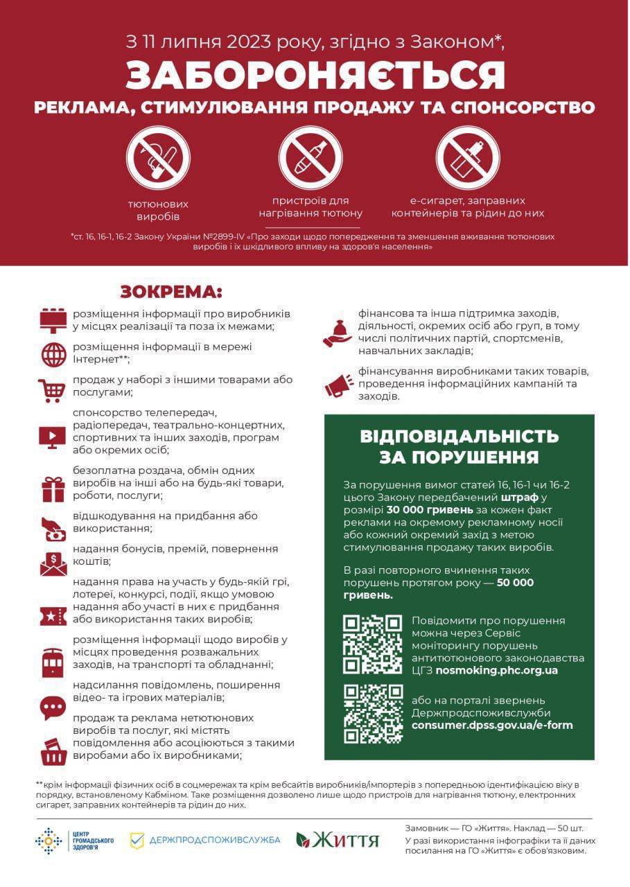 Також з'являться обмеження щодо реклами - вона не повинна містити зображення курильних виробів або процесу їх куріння.