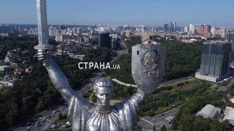 Нагадаємо, у неділю, 30 липня, у Києві розпочався демонтаж радянського герба на монументі "Батьківщина-Мати".