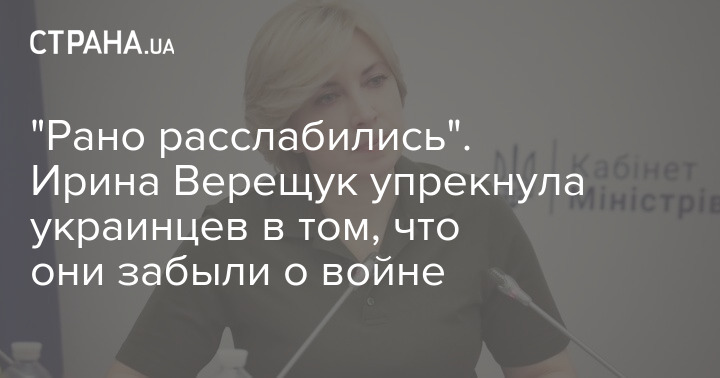 Віце-прем'єр України Ірина Верещук заявила, що багато українців "рано розслабилися" під час війни, яка ще не закінчена.