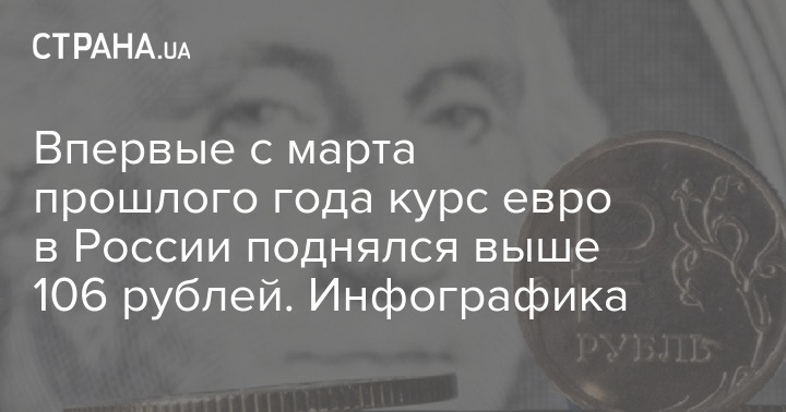 Уперше з березня минулого року курс євро в Росії піднявся понад 106 рублів. Інфографіка