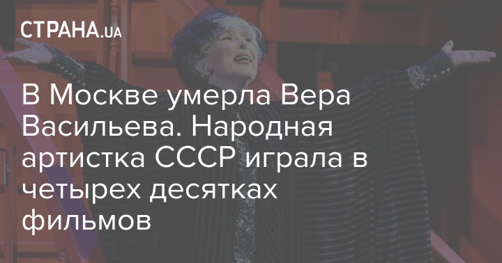 У Москві у віці 97 років померла народна артистка СРСР Віра Васильєва. Причину її смерті не уточнюється.