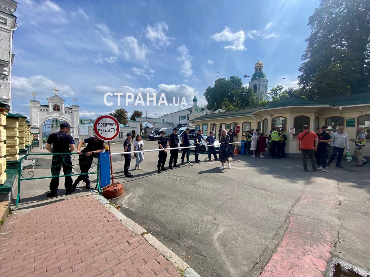 Віруючі УПЦ залишаються молитися під час входу до Лаври. Фото "Країна"