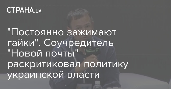 "Постійно затискають гайки". Співзасновник "Нової пошти" розкритикував політику української влади