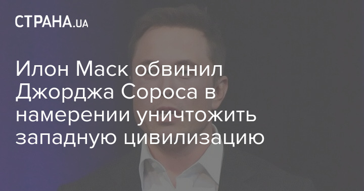 Американський підприємець Ілон Маск заявив, що Джордж Сорос хоче знищити західну цивілізацію.