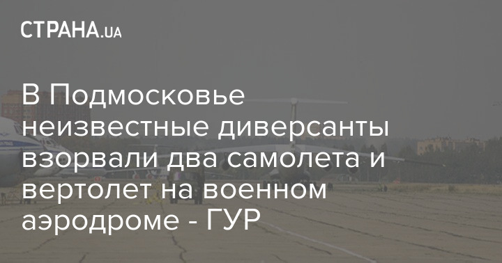 Головне управління розвідки (ГУР) при Міністерстві оборони України заявляє, що "невідомі диверсанти" підірвали два літаки та гелікоптер на аеродромі "Чкаловський" у Підмосков'ї.