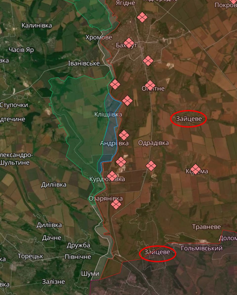 Крім атак на північний схід від Андріївки заявлені удари на новому напрямку - на захід від Зайцево.