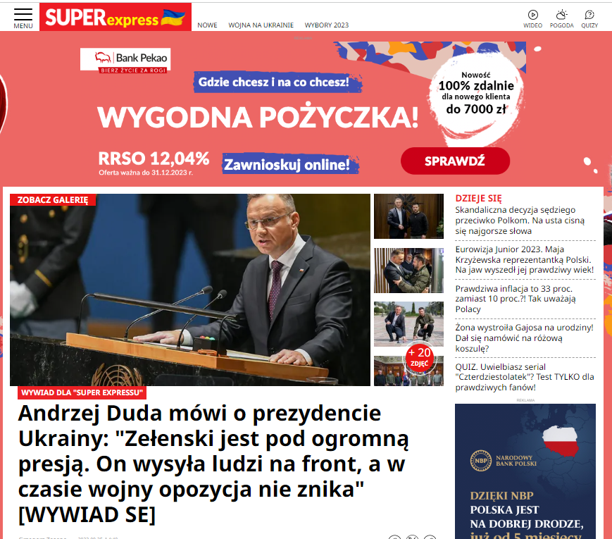 Про це сказав президент Польщі Анджей Дуда в інтерв'ю газеті Super Express.