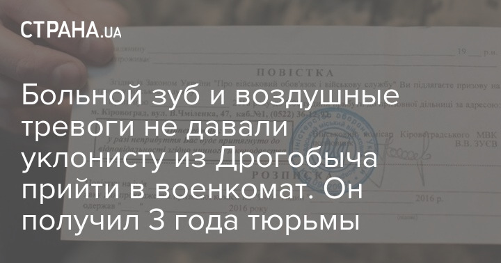 Хворий зуб та повітряні тривоги не давали ухилисту з Дрогобича прийти у військкомат. Він отримав 3 роки в'язниці