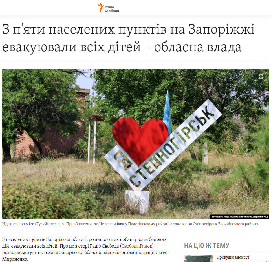 Примусову евакуацію дітей з Преображенки, Єгорівки, Гуляйполя, Новопавлівки та Степногірська оголосили ще 29 серпня.