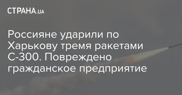 "Минулої ночі, близько 1:00, ворог завдав ракетного удару по Харкову. Зафіксовано "прильоти" 3 ракет, попередньо С-300, по території цивільного підприємства, сталася пожежа", - написав Синегубов.