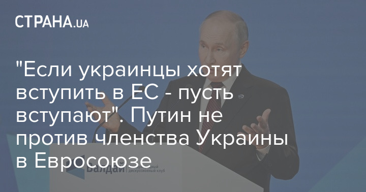 "Якщо українці хочуть вступити до ЄС – нехай вступають". Путін не проти членства України у Євросоюзі