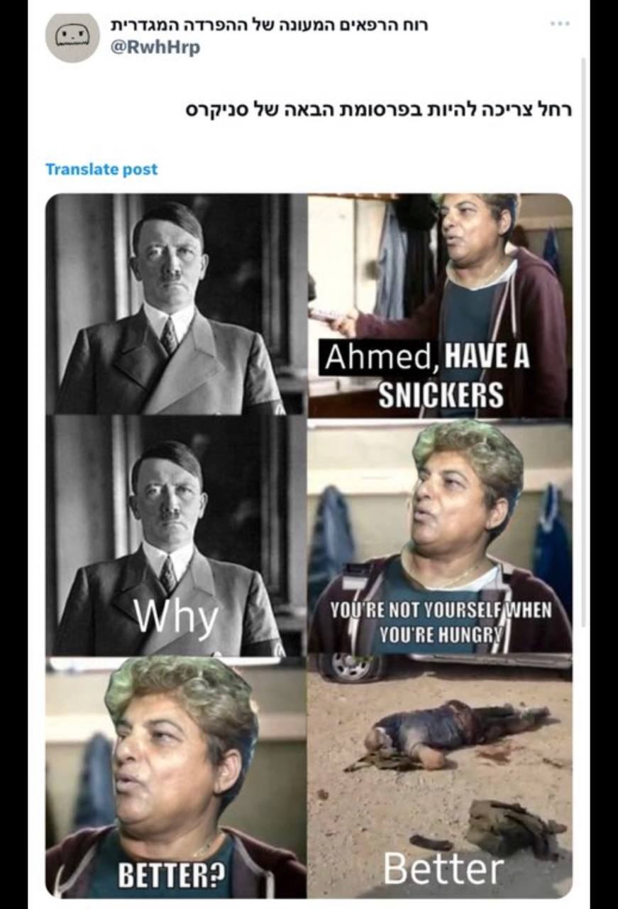 Рахіль стала героєм мемів в ізраїльському "Х", її навіть порівнюють із персонажем старозавітної Книги Суддів Яель, яка вбила ворожого євреям ханаанського воєначальника Сісару.