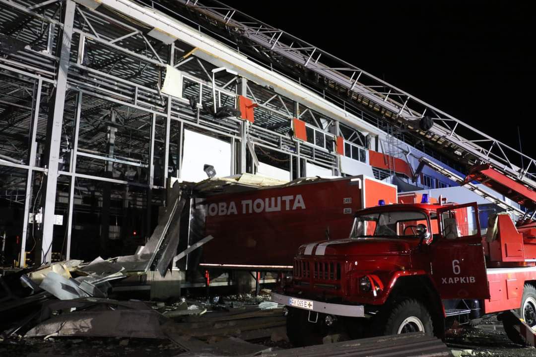 08:16 Фото терміналу "Нової пошти" під Харковом, де вчора був ракетний удар.