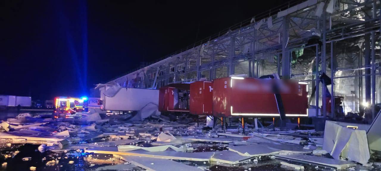 Будівля терміналу частково зруйнована. Пошкоджено сім вантажних автомобілів та два напівпричепи.