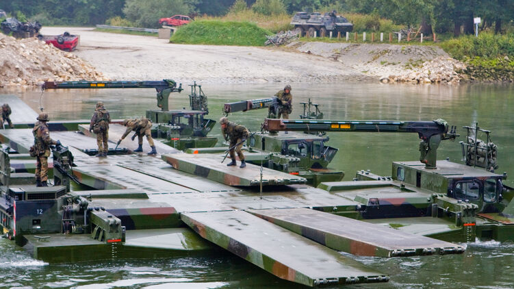 У Німеччині показали відео навчань із українськими військовими з форсування річки з використанням німецьких машин-амфібій M3 Amphibious Rig.