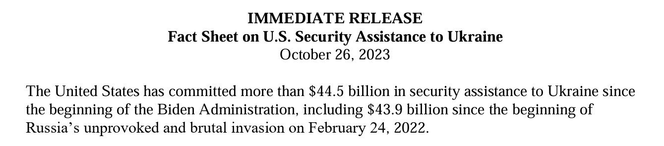 Тобто новий речник Палати представників по суті припиняє спробу Білого дому протягнути допомогу Києву в пакеті з Ізраїлем. Це означає високий ризик того, що суму, яку запитують для України, буде переглянуто у бік зниження (інакше б республіканці просто затвердили її в пакеті з Ізраїлем).