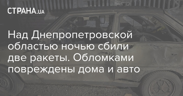 Над Дніпропетровською областю вночі збили дві ракети. Уламками пошкоджено будинки та авто