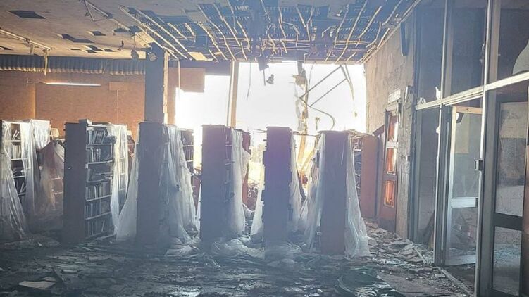 Також повідомляється, що постраждала бібліотека. У ній почалася пожежа, будівля суттєво пошкоджена.
