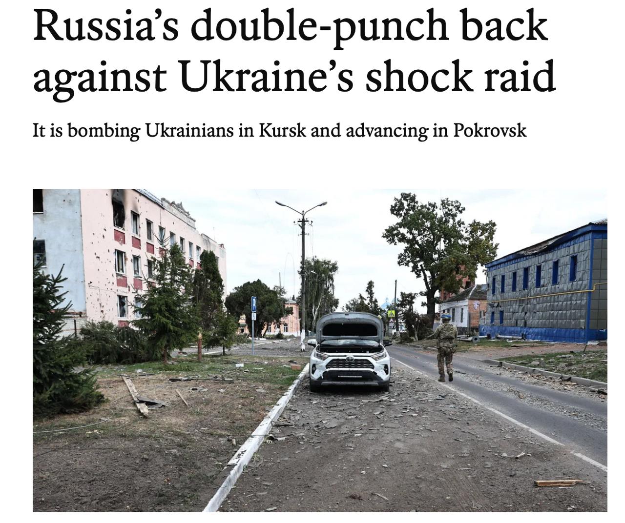 «Протягом перших п'яти днів це було дуже ефективно», але зі втратою елемента несподіванки українські досягнення сповільнилися. Українські солдати, що воюють у Курській області, кажуть, що вони вже починають бачити інший рівень спротиву. Втрати зростають. Росіяни наситили фронт більш підготовленими підрозділами, включаючи морських піхотинців та спецназ.