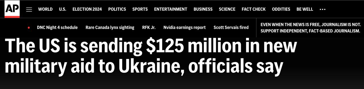 09:29 США передадуть Україні пакет військової допомоги на 125 млн. доларів до Дня незалежності, повідомляє AP з посиланням на американських чиновників.