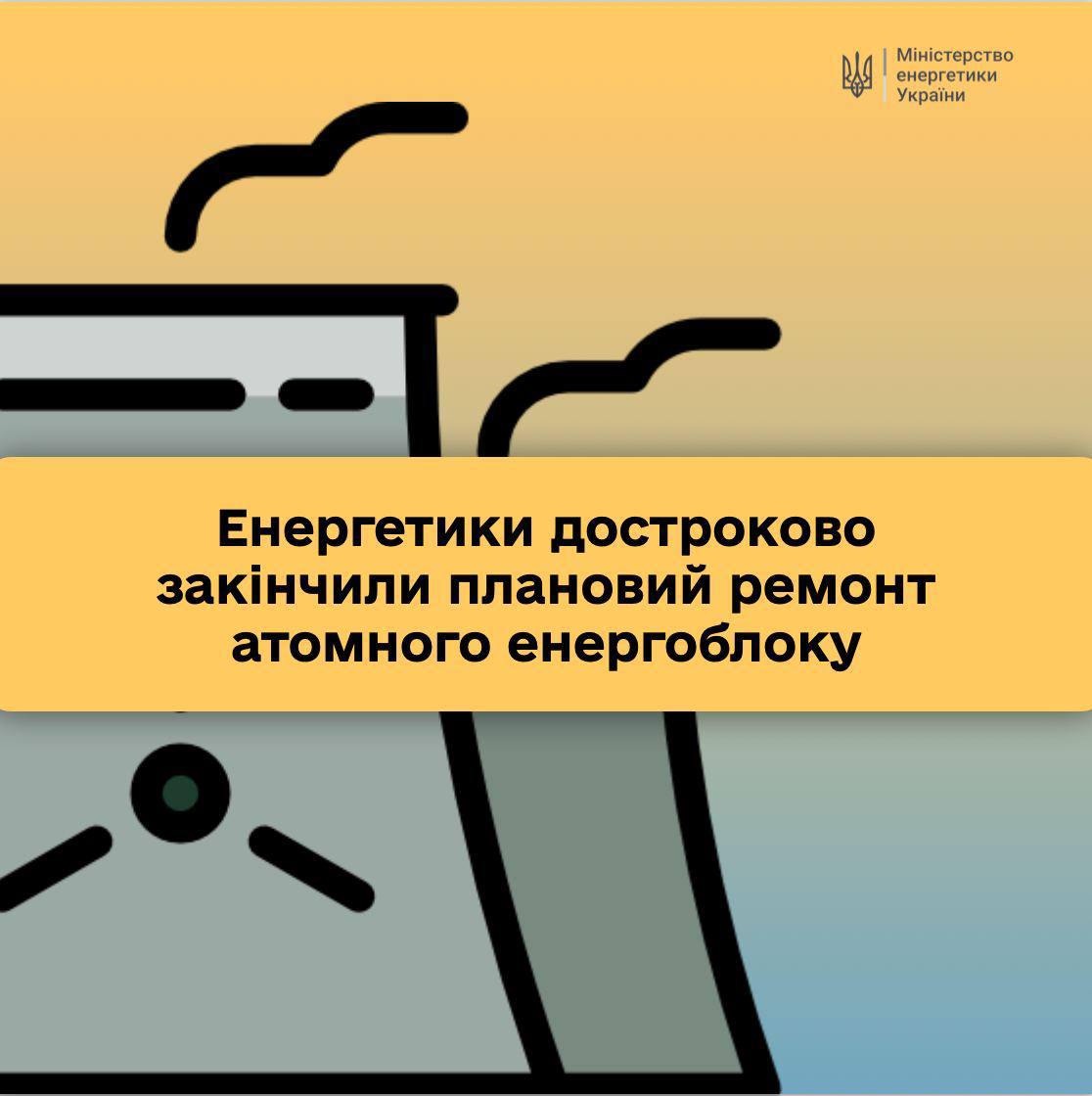 13:24 Із ремонту достроково виведено атомний енергоблок на 1000 МВт потужності, повідомляє Міненерго.