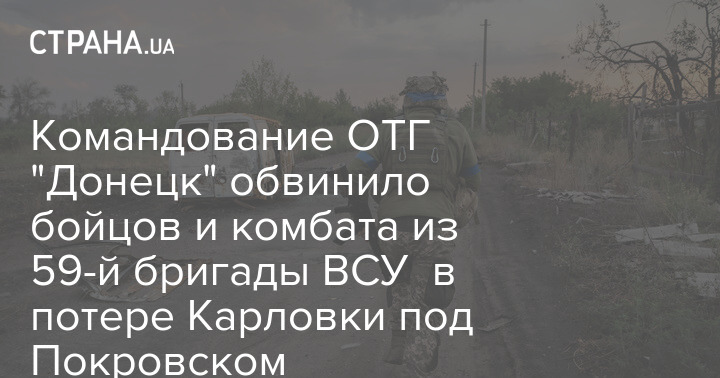 Командування оперативно-тактичної групи (ОТГ) "Донецьк" звинуватило у втраті Карлівки на Покровському напрямку бійців та командира 11-го мотопіхотного батальйону 59-ї бригади ЗСУ.