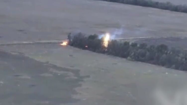 У мережі з'явилося відео, як українські бійці палять посадки, де знаходяться російські військові, за допомогою дрону.