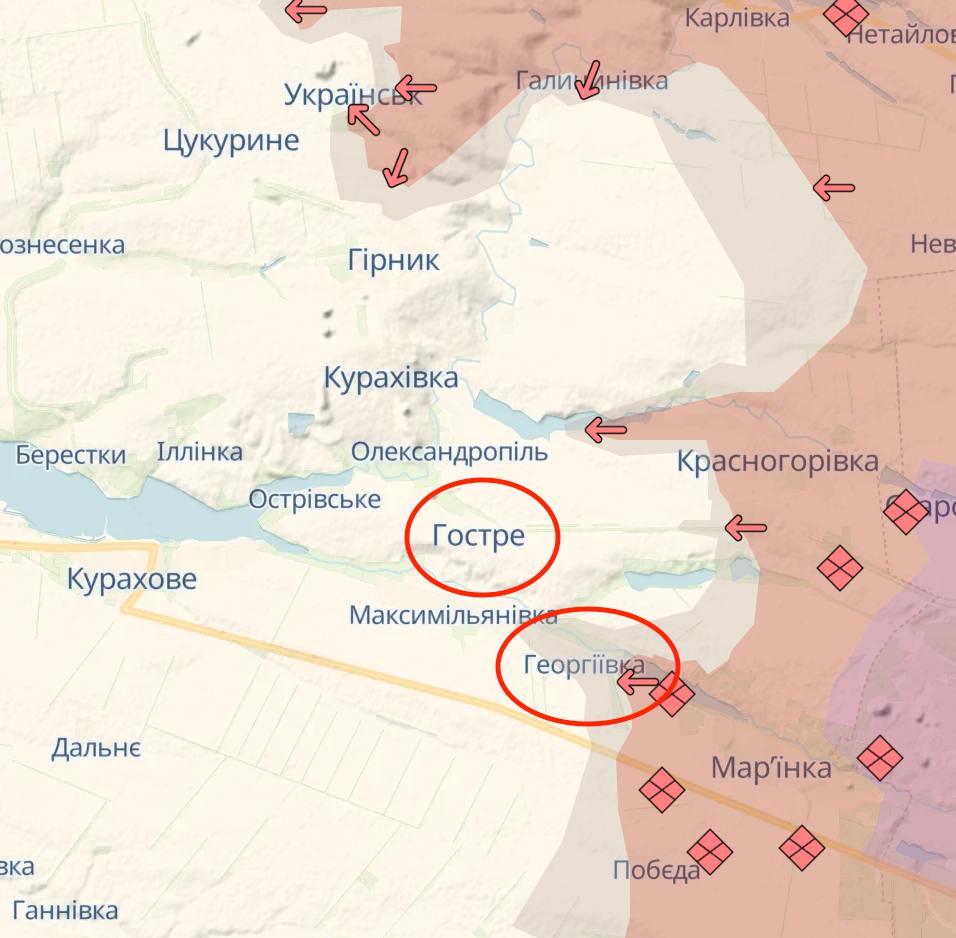 Зазначимо, що захід росіян в Гострої створює загрозу виходу в тил укріпрайону ЗСУ у Георгіївці.