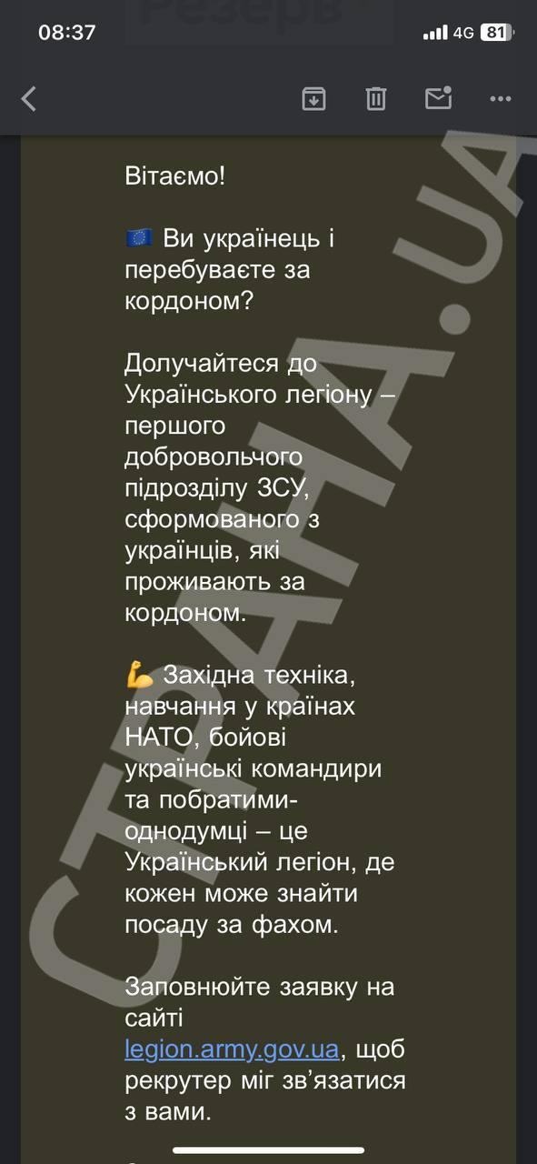 Листи надходять електронною поштою від імені програми "Резерв+" зареєстрованим користувачам.