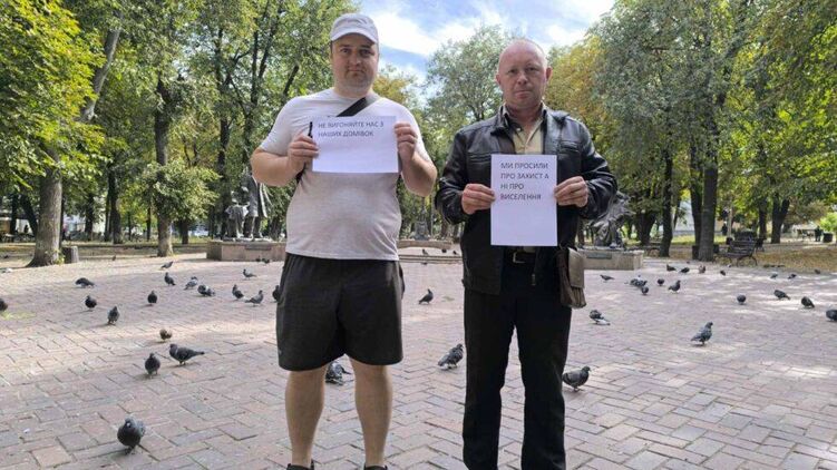 "Куди поселять 30 тисяч населення? А хто прилаштує їх на роботу, до школи, до дитсадка?! Тобто кожен городянин колосально багато втрачає, отримуючи натомість слова "Тримайтеся"?! І це "тримайтеся" у кращому випадку, бо хто і де чекає на переселенців?" – заявив мітингувальник Віктор Верченко.